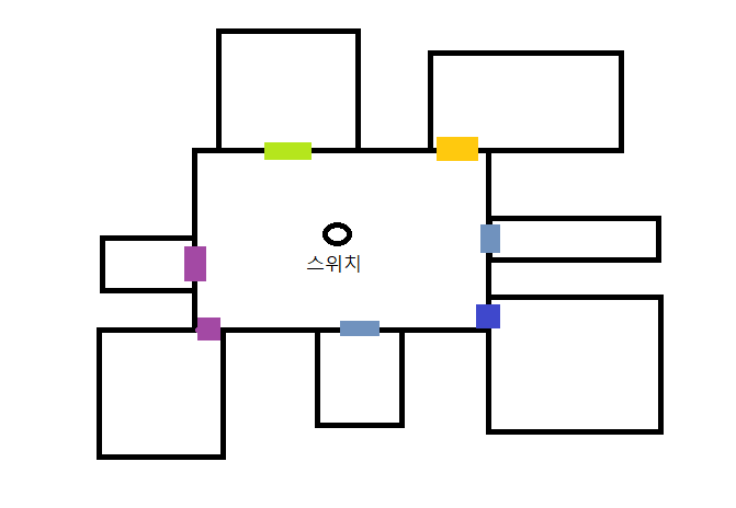 보라색 : 스위치를 두 번 눌러야 열리거나 닫히는 무거운 문.