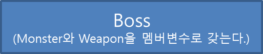 이 게임은 보스몬스터들이 무기를 들고 있고, 몬스터의 종족과 무기종류에 따라 공략하는 맛이 있는 게임이라고 가정해보자. 보스의 패턴은 계속 랜덤으로 나온다고 가정해보자.